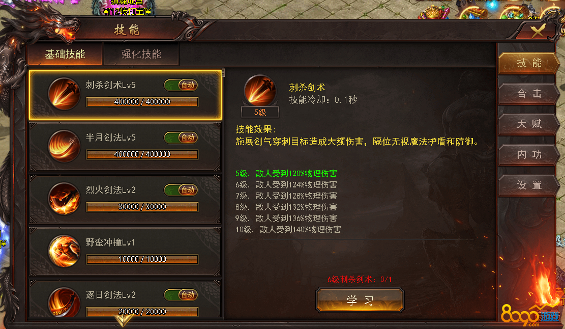 战斗经验: 在战斗中使用技能也会为该技能获得经验,达到一定经验后可自动升级。