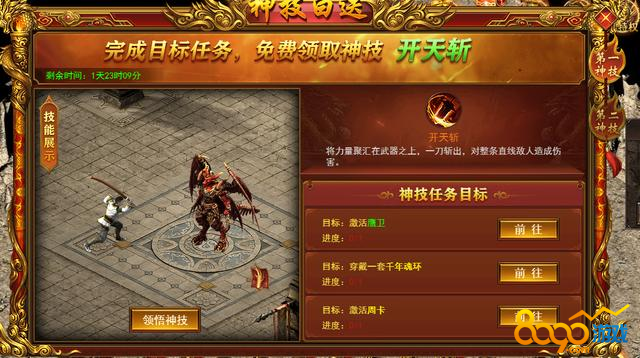 获得《维京传奇》中神技开天斩的任务包括以下步骤: