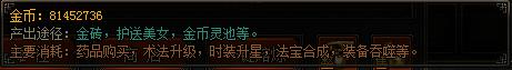 金币消耗大,但是产出的途径还是比较多的。每天两次的妖兽入侵可以获得数亿金币,宝山试炼可以获得2亿左右,平时多去击杀BOSS,每只也可以获得几十万金币。初次之外,消耗元宝开启系统赠送的银票,一次可以获得1亿,也可以把自己不需要的道具卖出,其中时装进阶符每个可以卖100万金币哦。