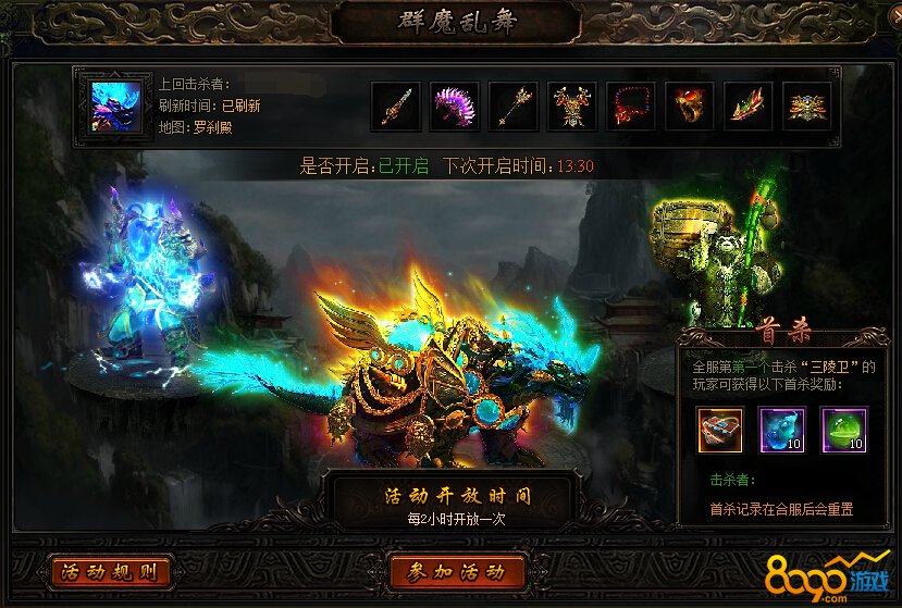 是不是迫不及待的进入群魔乱舞杀BOSS了呢,奖励非常丰富。先提升自己的实力吧。每天隔两小时就开启一次入口哦,抓准时机战斗吧。