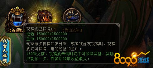 8090我欲封天中的祝福瓶是面向所有的新角色,没有时间限制,但是需要好友一同来玩。每当玩家祝福好友升级或者被好友祝福时,都会获得经验和金币累计存入祝福瓶。