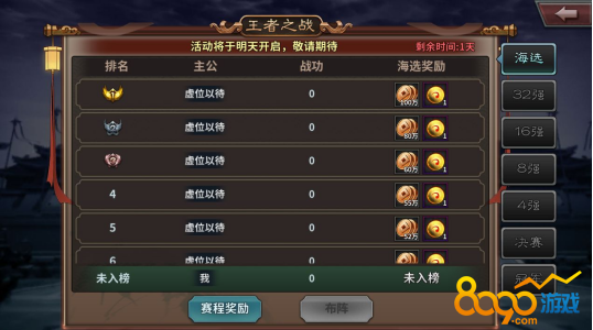 搜索"8090网页游戏"各位主公,对目前8090《王者之师》游戏内的“王者之战”的玩法内容,是否有足够的了解呢,今日小编就特别为主公们准备一篇详细规则说明,希望可以帮助到大家。