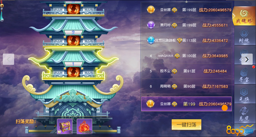 搜索"8090网页游戏"仙侠神域这款以仙侠冒险为主题的游戏,四种职业任意选择,十四张大地图任意传送,构建唯美仙侠世界,小编今天给大家详细介绍一下仙侠神域的战魂塔,感兴趣的小伙伴一起来了解一下吧!