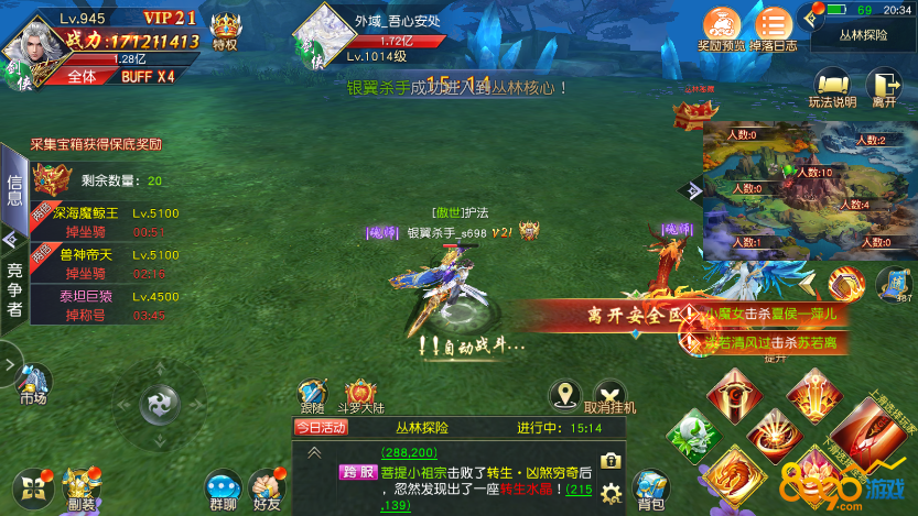 神兽岛是游戏中的一个特殊地点,也是一个重要的区域,玩家在这里可以挑战强大的BOSS,获取珍贵的神兽装备。此外,神兽岛的开启等级为330级(单服)和350级(跨服)。