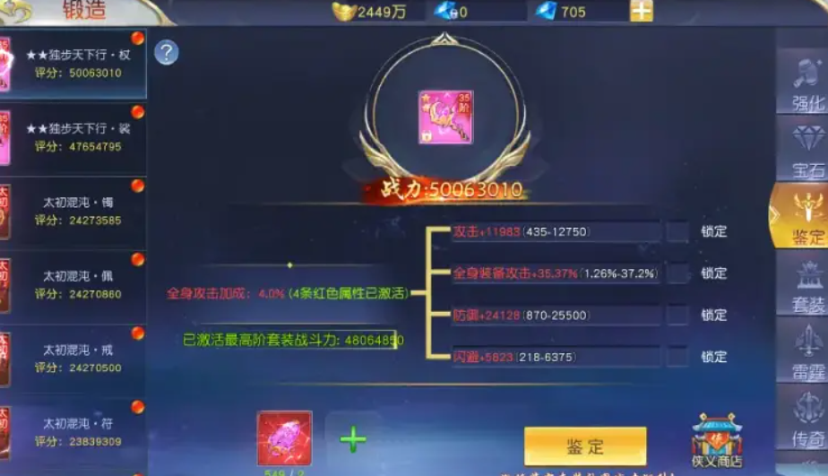 然而,随着游戏进程的推进,后期的洗练策略需要进行调整。后期的洗练重点应该是将攻击装备的属性洗练成红色的暴击率,而生命装备的属性则应该洗练成红色的闪避和命中。