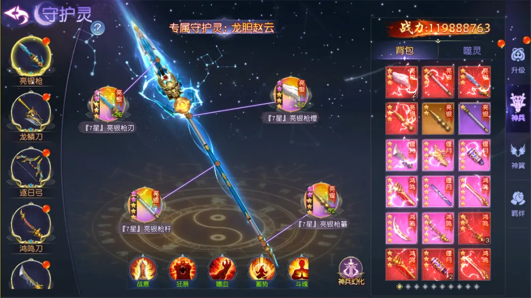 目前,守护灵的神兵主要通过招募系统获得,虽然偶尔会有一些运营活动会产出神兵,但数量相对较少,可能难以满足大家的需求。因此,建议大家通过招募系统来获取神兵,十连招募的钻石消耗为2万,但神兵的爆率非常高,基本上每次十连都能获得4星以上的神兵,甚至7星的神兵爆率也相当可观。