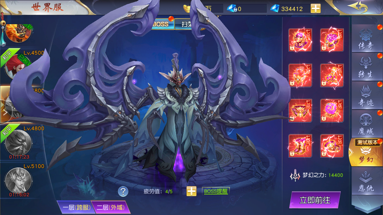 梦幻BOSS的打法与其他BOSS类似,但也有着独特的挑战和规则。它同样分为两层:第一层是跨服挑战,第二层则是更为刺激的外域挑战。