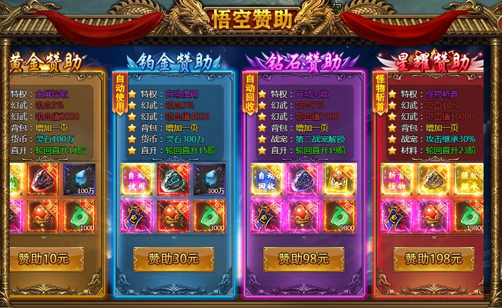 3、悟空赞助:黄金赞助、铂金赞助、钻石赞助、星耀赞助
