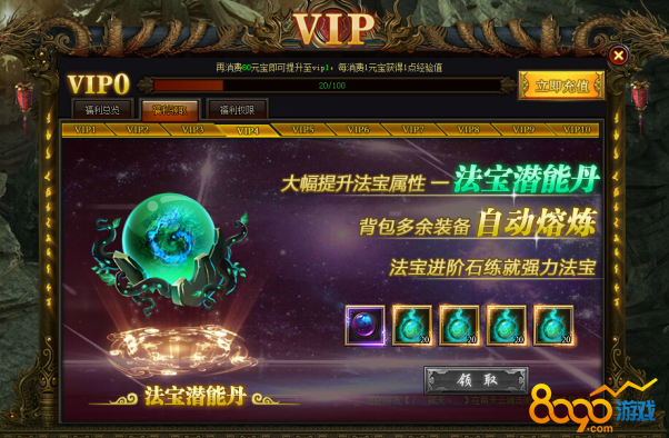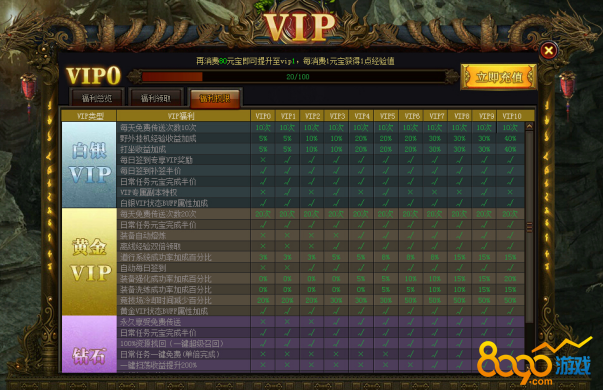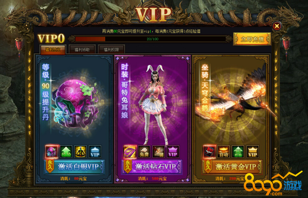 充值元宝消耗一定金额即可成就VIP用户