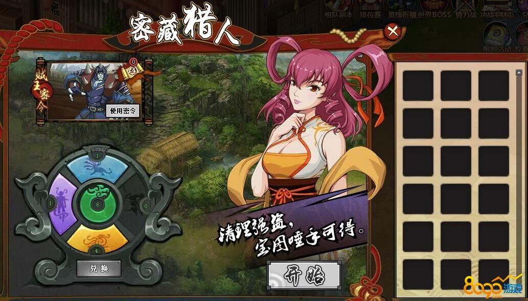 搜索"8090网页游戏"镇魂街有一个每日活动任务密藏猎人,系统将会每日为玩家刷新密藏猎人任务,玩家完成密藏任务可以获得藏宝图或者奖励。
