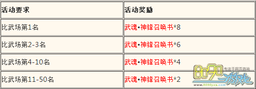 【活动内容】根据每日比武场排名给予奖励,比武场每日22:00排名更新后即可领奖,连续5天,每天可以领取1次排名奖励,活动结束奖励如未领取,自动邮件发放。