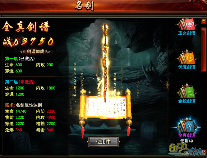 当名剑成就达到一定的程度是即可激活剑谱,一个剑谱可以给多个豪杰装备,当然名剑属性越高,所能激活的剑谱等级就越高,你用剑的本领越强,学会剑谱里的武功就越厉害,这是一个道理。