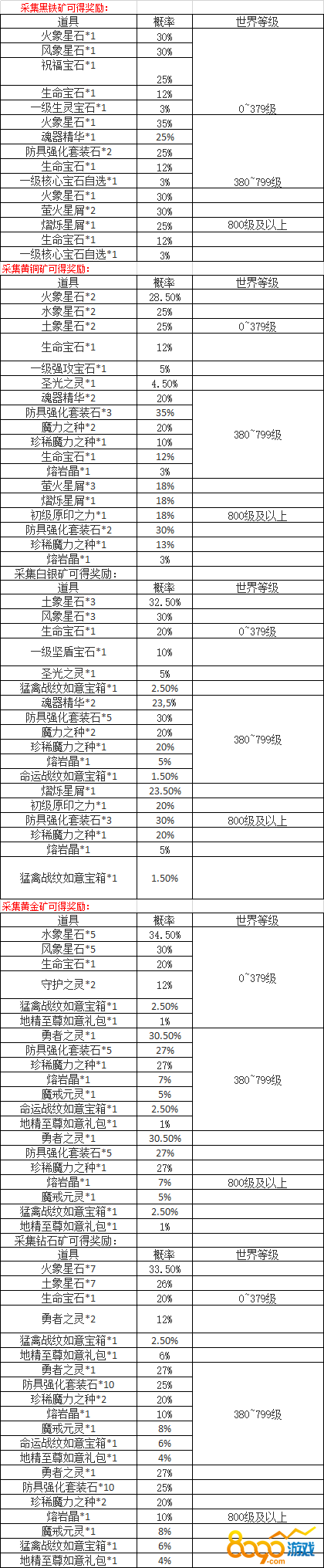 (3)完成挖矿后可立即获得一个奖励,矿石有不同品质,品质越高奖励越好;