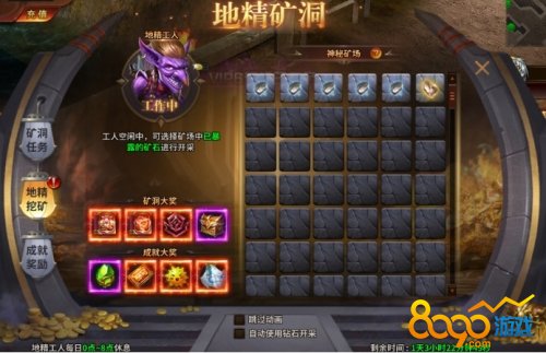 (4)需要注意地精工人在0点~8点期间休息,期间无法进行工人挖矿,玩家还能选择进行钻石挖矿。