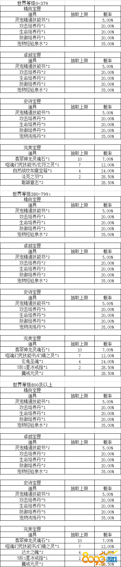 (2)宝匣需要点亮后才能抽取,初始默认点亮精良宝匣,每次抽取可获得宝匣内的一个随机奖励,并有概率点亮下一品质的宝匣。抽取的宝匣品质越高,奖励越好;