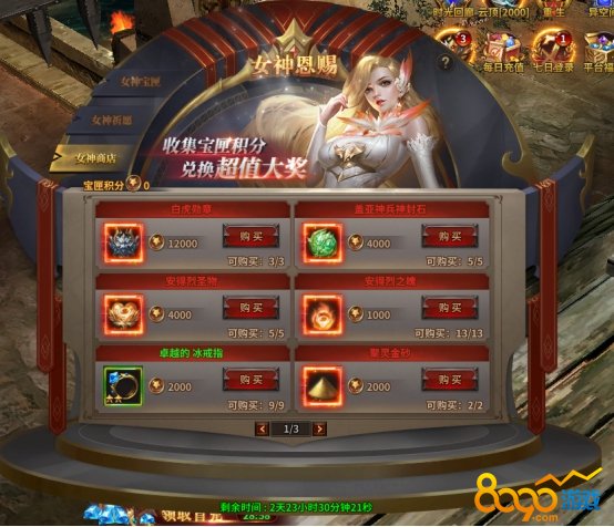 (1)玩家抽取女神宝匣时,可额外获得宝匣积分;