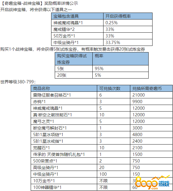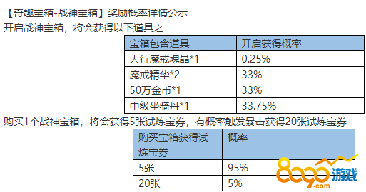 a. 将获得5张试炼宝券,并有概率触发暴击,开启1个战神宝箱最多获得20张试炼宝券