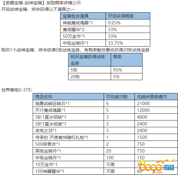 活动共包含【奇趣试炼】、【兑换商店】、【奇趣宝箱】三个部分