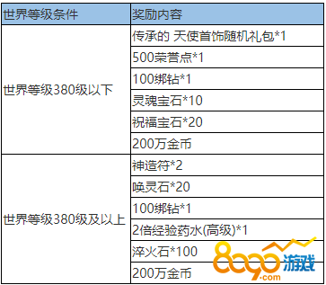世界等级380以下的服燃放耀世爆竹概率开出:耀世大奖如意宝箱(可选:玄天冰魔召唤石*1/色欲魔魂*1),神鹰火种*1,魔戒元灵,洛克之羽,幸运宝石等珍稀道具;