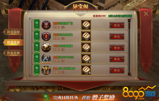 (2)异宝任务每日0点重置,千万不要错过哦;