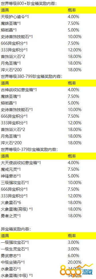 ● 获得异宝箱奖励,开启有机会获得各种奖励;