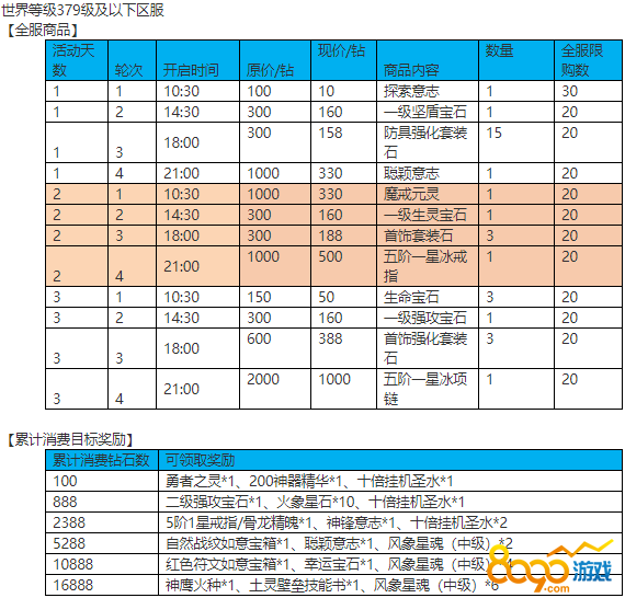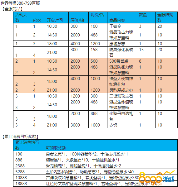 2) 每轮商品都有全服抢购数量限制,且每名玩家只可以抢购一份