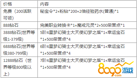 完美转职卡、大天使幻梦之盾限时特卖!已完成四转的角色可转职为梦幻骑士!