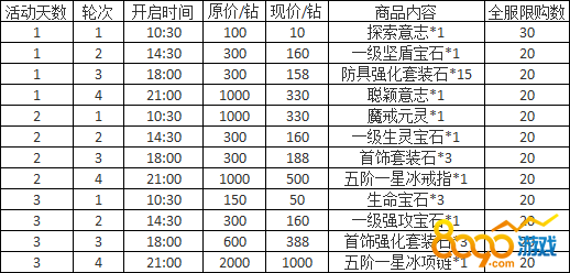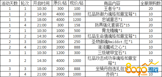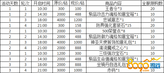 每轮商品都有全服抢购数量限制,且每名玩家只可以抢购一份
