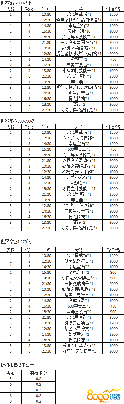 通过完成任务或购买(活动期间 商城-[常用道具] 出售),可以获得【折扣币】,消耗折扣币可以再次抽取幸运折扣,最低折扣为5折