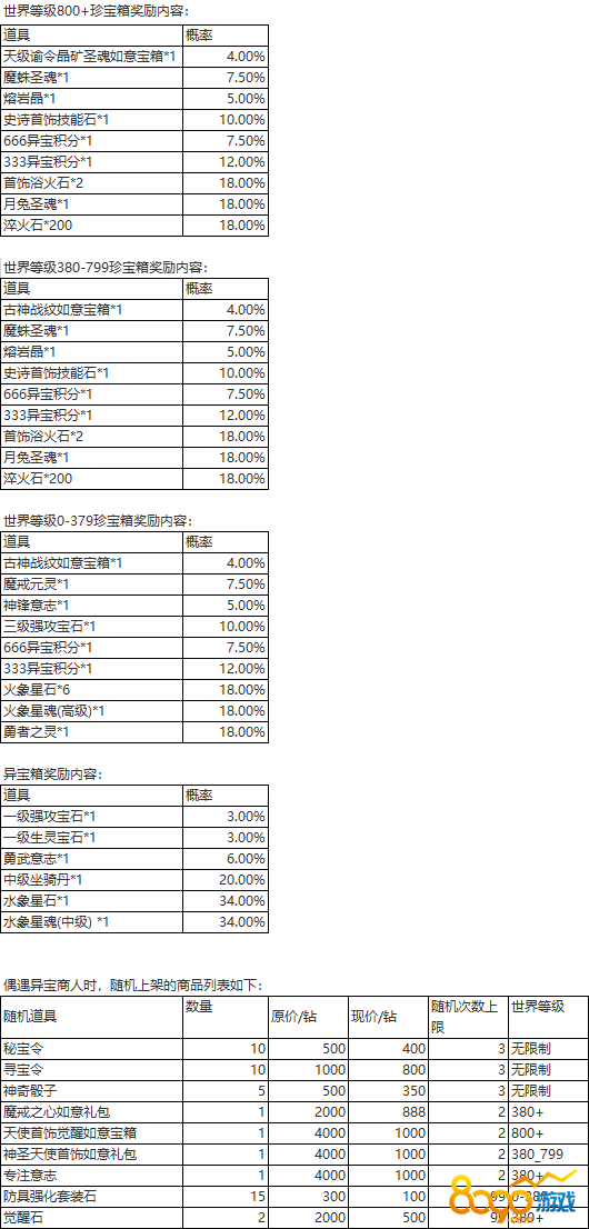 (1)活动期间,完成异宝任务,即可获得异宝骰子和神奇骰子奖励;