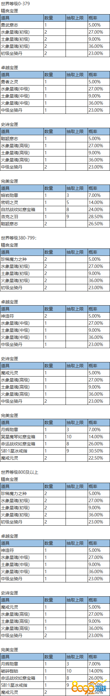 (2)宝匣需要点亮后才能抽取,初始默认点亮精良宝匣,每次抽取可获得宝匣内的一个随机奖励,并有概率点亮下一品质的宝匣。抽取的宝匣品质越高,奖励越好;