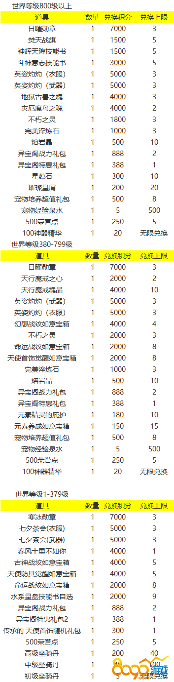异宝阁兑换商品内容如下: