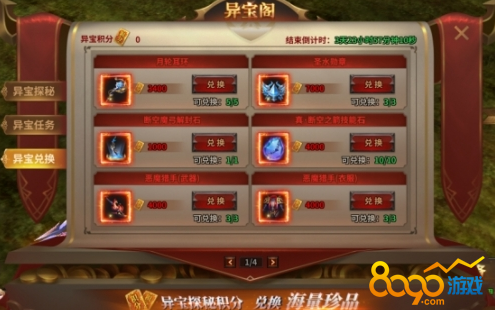 玩家在异宝探秘中可以获得异宝积分,异宝积分可以在异宝兑换中兑换商品,部分异宝限量出售,走过路过前往不要错过哦!