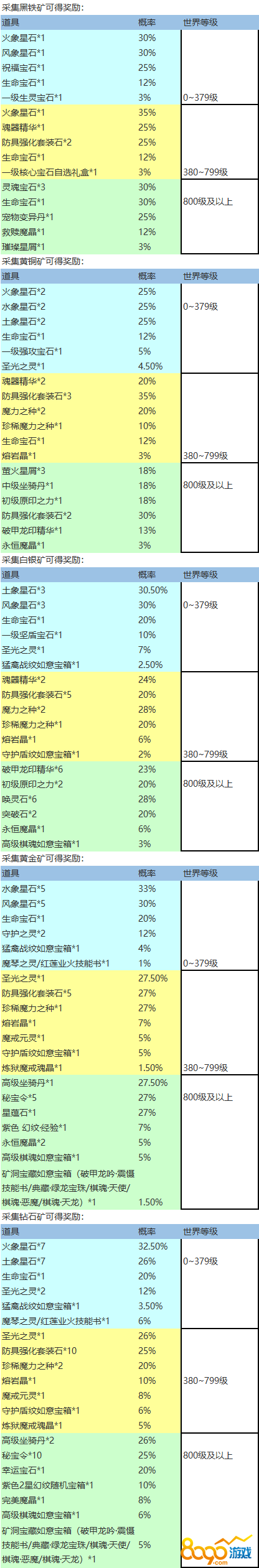 (3)完成挖矿后可立即获得一个奖励,矿石有不同品质,品质越高奖励越好;