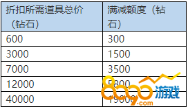 活动期间可使用满减折扣如下