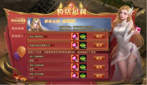 新增粉钻战令,完成粉钻任务提升战令等级可获得海量福利!