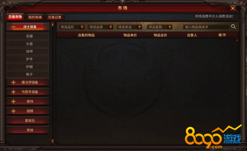 1.交易市场:在市场系统[交易市场]界面,可以选购正在上架的流通物品。正在上架的物品有很多种,市场系统详细的分类、筛选和搜索功能,使得你能轻松找到自己需要的物品。