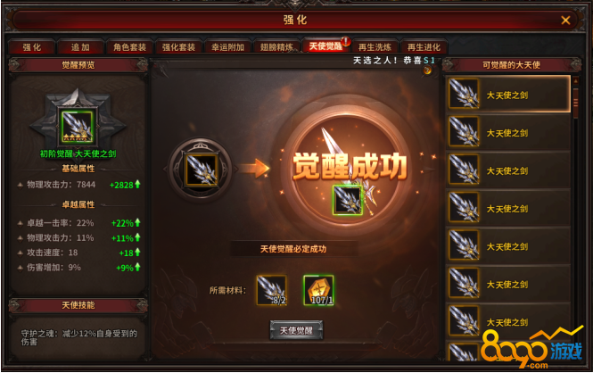 在天使觉醒系统中,玩家可以通过消耗武器道具、觉醒材料使大天使武器完成觉醒,获得更为强力的觉醒大天使。