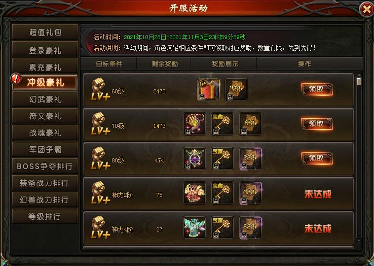 活动期间,玩家等级达到指定目标即可领取丰厚奖励。