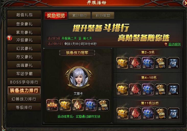 (1)活动期间,根据玩家穿戴的装备总战力,作为装备排行积分
