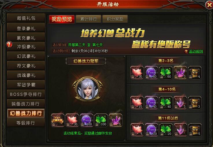 (1)活动期间,根据玩家最强3只幻兽提供的总战力,作为幻兽排行积分