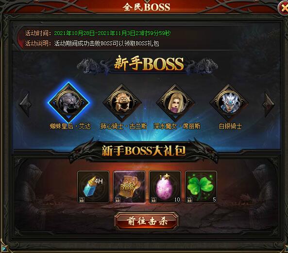 活动期间,击败指定BOSS即可领取丰厚奖励。