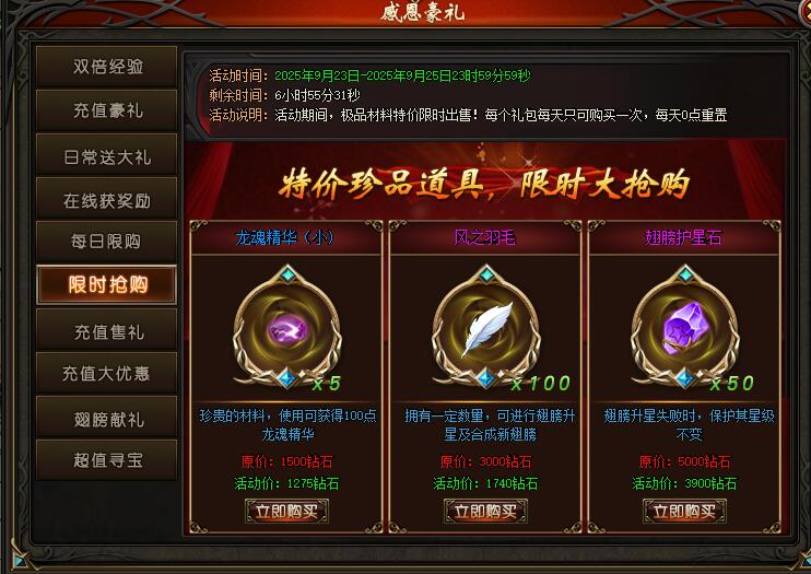 活动内容:活动期间,每天0点刷新超值折扣珍贵道具! 数量有限,切勿错过!!