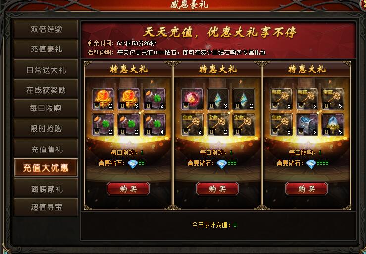 活动内容:活动期间,每日充值满足要求,方可购买超值道具;!!