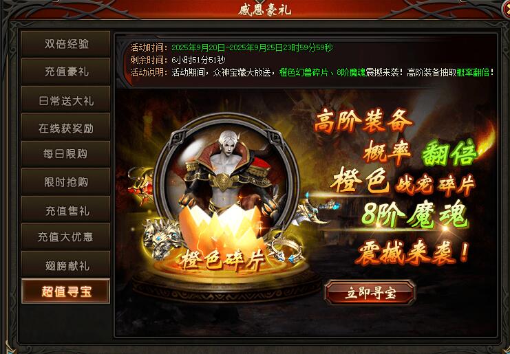 活动内容:活动期间,高阶装备获得概率翻倍!!!