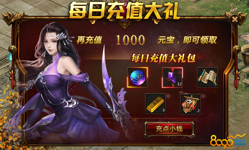 每日充值元宝数达到相应金额即可领取对应奖励。