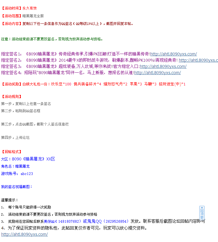 • 暗黑屠龙QQ签名递祝福 免费领白银大礼包