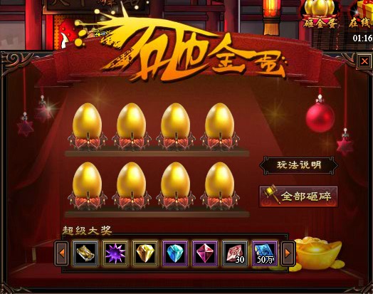 2. 金蛋被砸碎时奖励将自动进入玩家背包,金蛋位置上显示玩家获得的奖品;