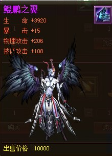 具体属性的图也已经贴出来了,圣洁之翼:生命+1680,物理攻击+88,技能攻击+46。鲲鹏之翼:生命加3920,暴击+15,物理攻击+206,技能攻击+108。