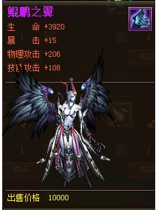 具体属性的图也已经贴出来了,圣洁之翼:生命+1680,物理攻击+88,技能攻击+46。鲲鹏之翼:生命加3920,暴击+15,物理攻击+206,技能攻击+108。